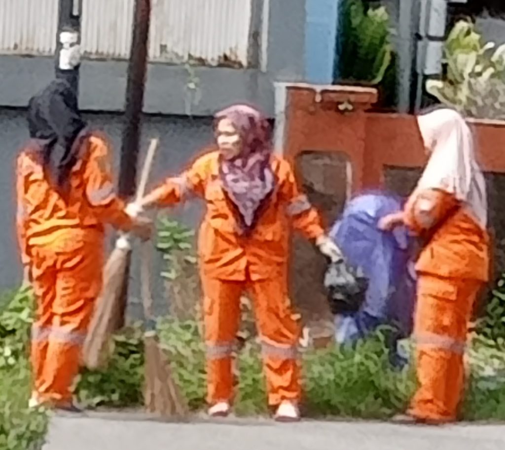 Selesai sholat subuh, disaat warga berolahraga, setelah menunaikan kewajiban di mesjid atau mushalla, pasukan oranya sudah mulai bekerja. Jalan dilalui sudah rapi, membuat suasana olahraga pagi, memikat hati. Warga berpeci, berbalut mukenah, semakin bergairah berolahraga di jalan yang bersih, indah berseri, menyambut mentari pagi.