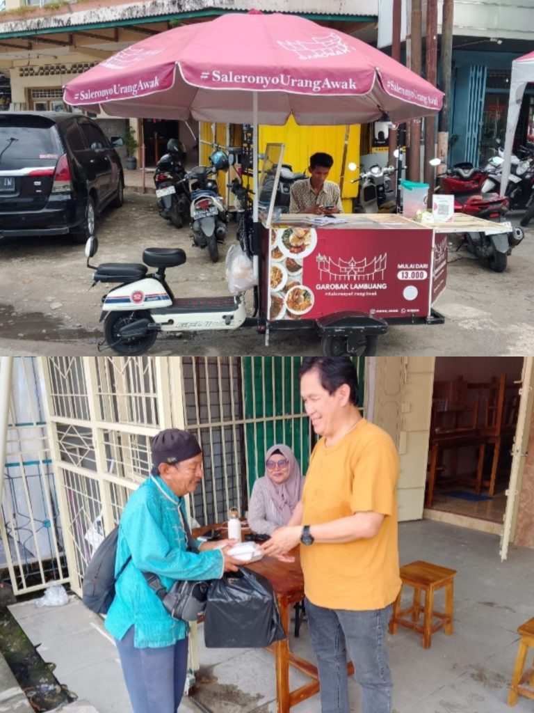 Beda dari sebelumnya, Jumat (24/4) Alam Gunawan Teddy berbagi melalui UMKM Gerobak Lambung. Inipun semakin diminati warga. Sebab, disamping berbagi juga mengangkat UMKM