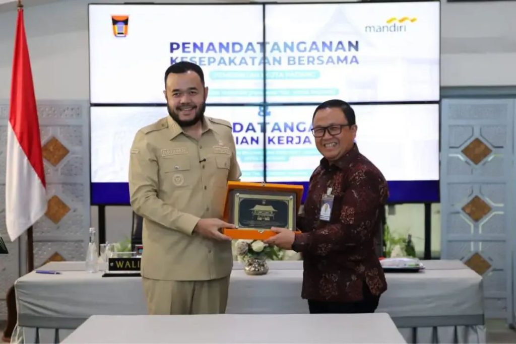 Penandatanganan kesepakatan bersama berlangsung di Gedung Putih, komplek Rumah Dinas Wali Kota, Senin (20/4/2026), dilakukan langsung oleh Fadly Amran selaku Wali Kota Padang bersama Vice President PT Bank Mandiri (Persero) Tbk Area Padang, Feri Cahyono.